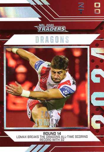 2025 NRL Traders Season to Remember SR40 Zac Lomax Dragons