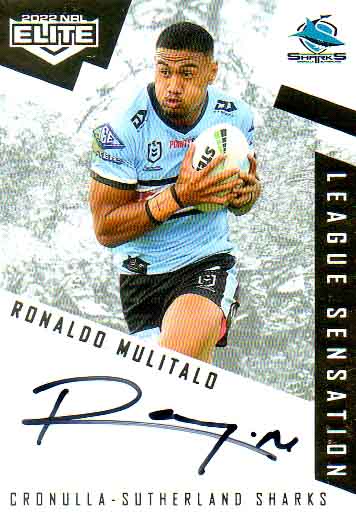 2022 NRL Elite League Sensation White Signature LS04 Ronaldo Mulitalo Sharks