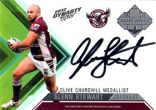 2012 NRL Dynasty Signature Redemption AWS3 Glenn Stewart Sea Eagles #4/100