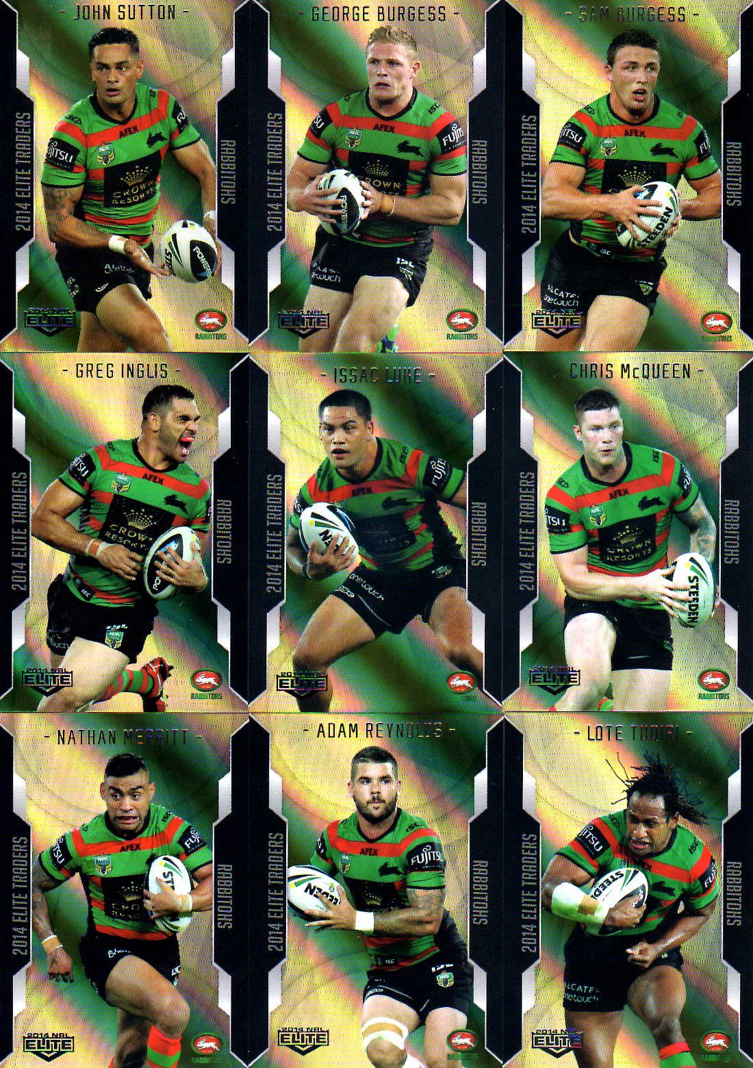 2014 NRL Elite 9-Card Gold Parallel Team Set South Sydney Rabbitohs
