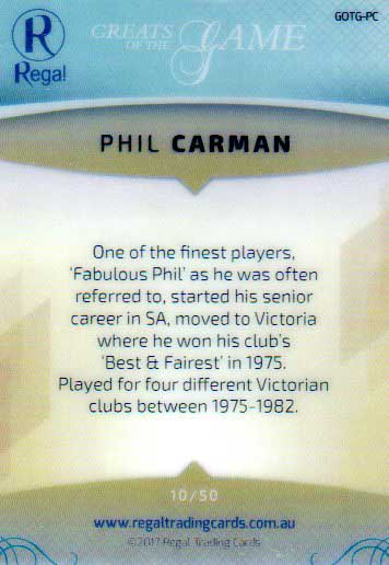 2017 Regal Greats of the Game Gold Parallel GOTG-PC Phil Carman #10/50