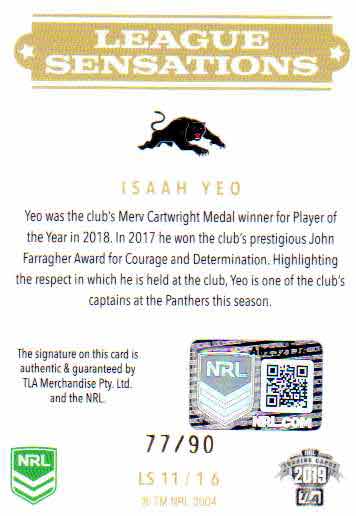 2019 NRL Elite League Sensations Signature LS11 Isaah Yeo Panthers