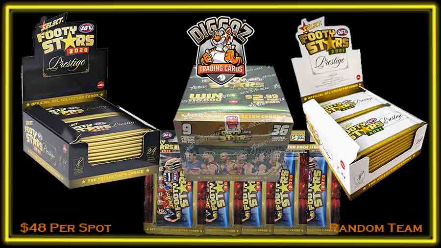 This is a Random Team Group Break with: 1 x Box of 2021 AFL Footy Stars Prestige 1 x Box of 2020 AFL Footy Stars Prestige 1 x Box of 2021 AFL Footy Stars