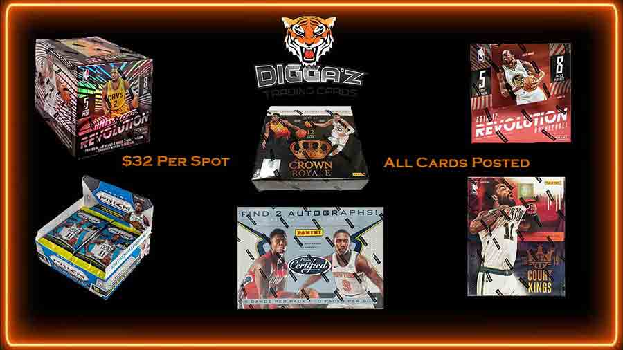 You are welcome to trade your teams once they have been assigned (Trading is definitely encouraged!). Please make sure any trade is confirmed by Diggaz Trading Cards before the live break begins.